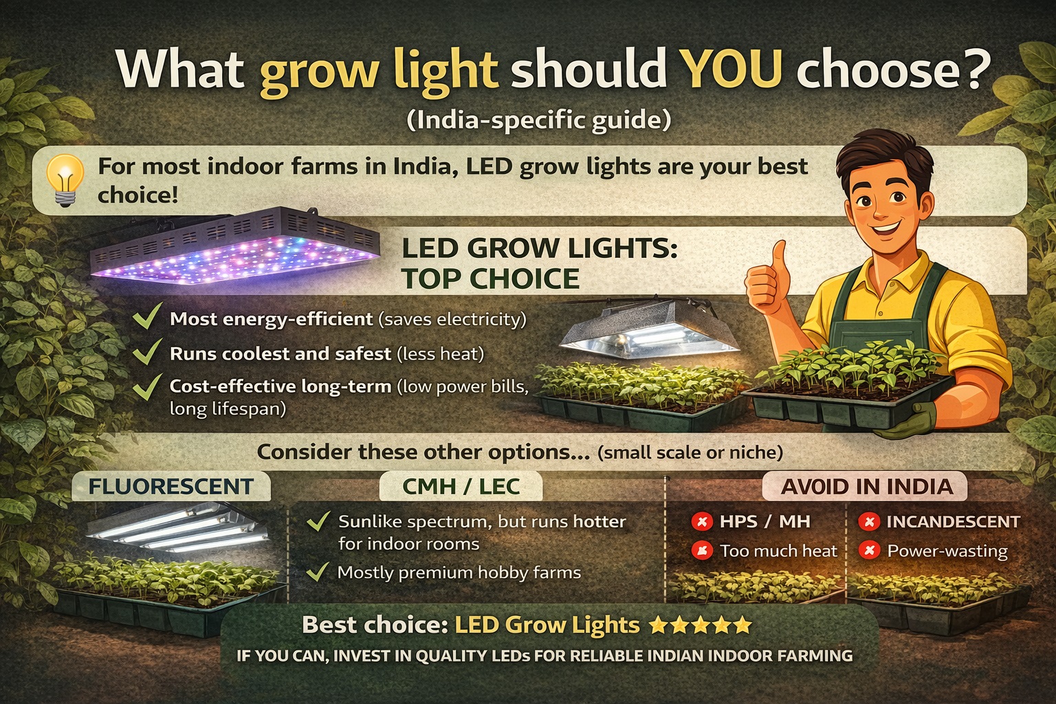 - Prioritize Full-Spectrum LEDs: They are the most flexible and safest choice for Indian conditions, offering the best balance of growth energy and temperature control.