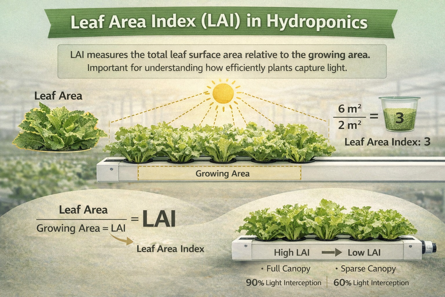 | Leaf Area Index (LAI) | Ratio of total leaf area to the ground area occupied by plants. |
